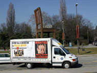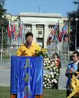 | 联合国前的万国广场上 | 法轮功学员宣读瑞士国会议员Ueli Leuenberger的致词 | 澳大利亚法轮功学员潘宇在记者招待会上介绍亲身被迫害的经历 |