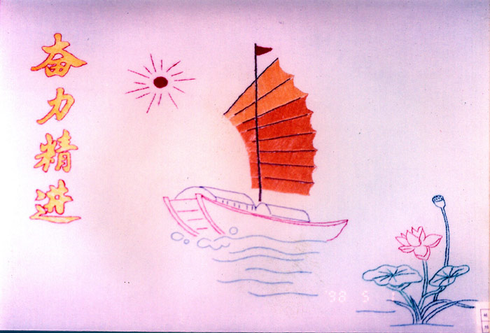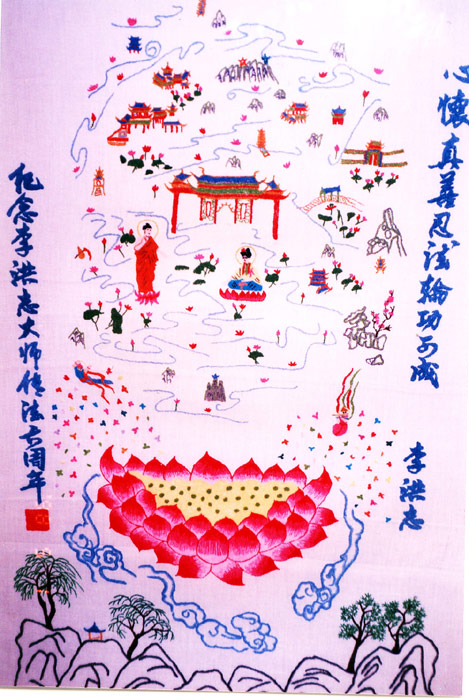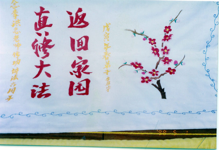 【明慧网二零零四年三月十六日】1998年5月1日,第二届黑龙江省双城市法轮大法书画刺绣作品展。(部分展品)