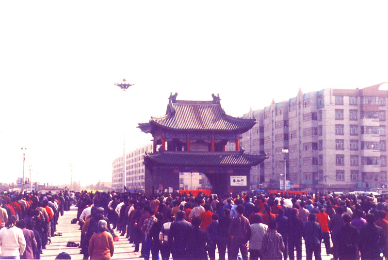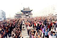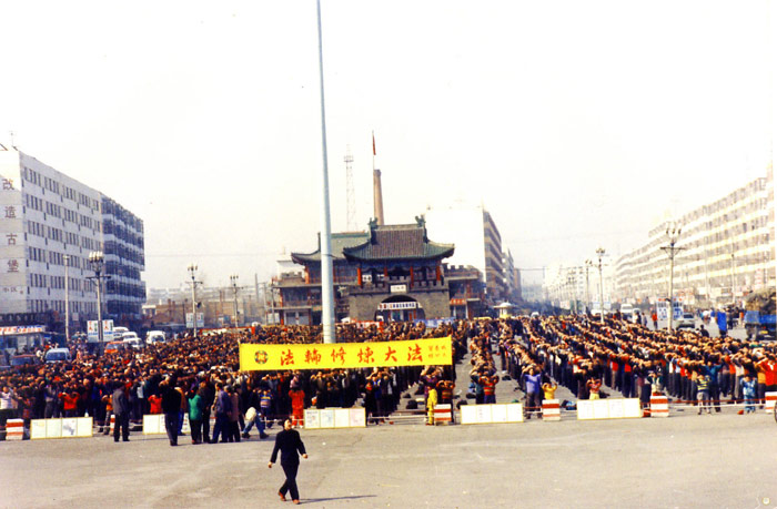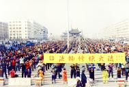 历史图片:1999年5月双城市大法弟子在东门广场集体炼功