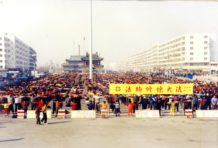 历史图片:甘肃兰州大法弟子在1999年7.20之前集体炼功