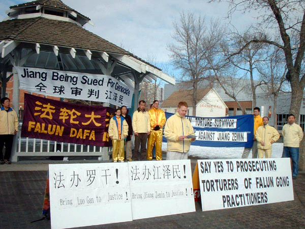 【明慧网2004年3月17日】3月14日下午,加拿大阿伯塔法轮功学员在盛大的圣派屈克日(St. Patrick's Day) 游行之后在爱民顿举行集会,支持张昆仑教授以罪起诉包括江泽民在内的参与者,呼吁加拿大各界敦促最高检察官艾文-考特勒(Irwin Cotler)接受张昆仑教授的起诉请求,并向行人征集签名。