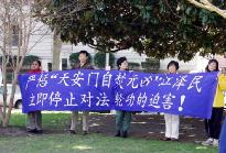 在集会上,来自马里兰州的范娅姑女士说:我不炼法轮功,但我57岁的妈妈却因为修炼法轮功连续三次被捕,我知道妈妈是个人人称道的好人,现在仍被关押在郑州市公安局第一看守所,生死不明。为了我的母亲,也为了所有法轮大法修炼者,我们一定要把那些(中国)邪恶的政府,公安向各国媒体曝光!把他们剥夺和践踏人权的丑闻公诸于全世界!她含泪恳求美国政府,善良的民众伸出援手,帮助营救她在中国被迫害的母亲和所有被迫害的法轮功学员。