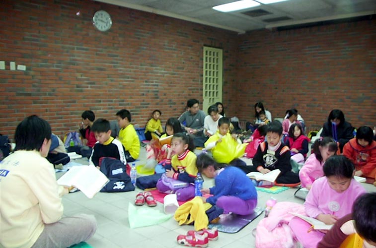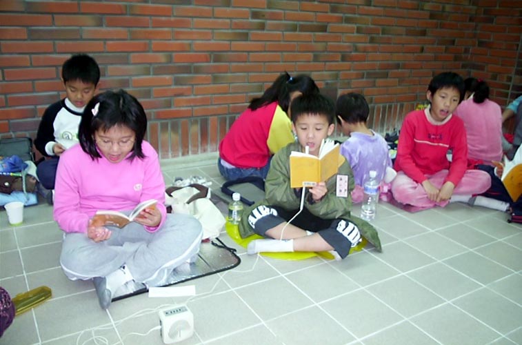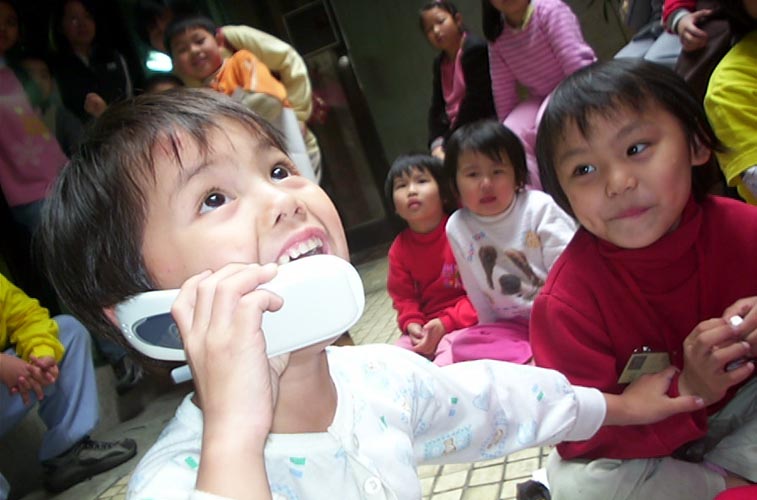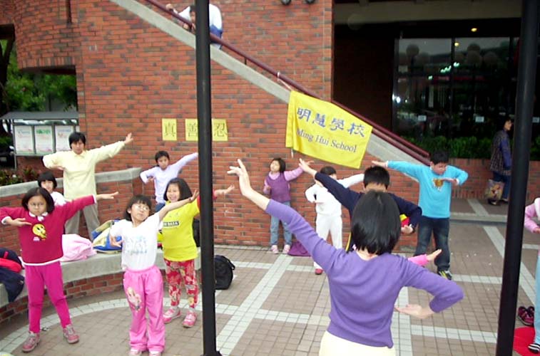 有感于法轮大法在中国大陆受到江氏集团操控的媒体造谣污蔑,连很多小朋友也被蒙蔽,甚至仇视法轮功,许多学校以开除学籍、强迫签名污蔑等手段迫害在学的法轮功学员。于是美华姐姐带小弟子们一起打电话给大陆同胞讲真相,希望能帮助制止迫害。在美华姐姐的引导下,大家一起对着电话唱歌、讲真象。有的小弟子还会抢着电话要讲真象呢!小洁藉由电话向大陆民众说:“希望你能告诉那里的公安,叫他们不要迫害法轮功学员。”年纪最小的君显也对着电话喊出:“法轮大法好!法轮大法是正法!”