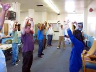 当学员们在做准备工作时,一群人已经集合在一起等待参加。从一开始,我们就注意到听众们很感兴趣,并很注意听讲。在介绍大法的时候,他们很专心,不住地点头,偶尔也评论几句。期间,当有人刚刚进来并弄出声音时,大家就会要求他们轻一点儿。结束时,他们还问了一些问题。总的来说,他们的理解和领悟是相当高的。在介绍结束后,经理讲述了他是多么感激我们来办这个学习班,他认为这些人通过修炼法轮大法会得到一次很好的自我提高的机会。他说无家可归是绝望导致的,而绝望的根源在于不好的行为和精神状态。凡事皆有因。他说如果在思想上能改变和提高,那么他们就能真正地从总体上提高自己。