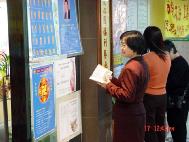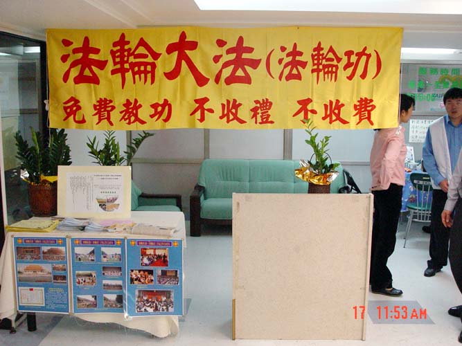 还有一团16位美国纽约华商来台拜会侨委会并参观立法院,看到法轮大法炼功图片,惊叫说:“法轮功耶!”法轮功学员与他们交谈,他们了解了法轮功真象后纷纷索阅相关材料及VCD。
