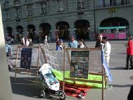 很多人围着大法的展板仔细的观看,其中有两位很有身份的人,一边看展板,一边交谈。特别看到江××镇压法轮功所用的各种酷刑后,受到很大震动,对大法弟子很同情,还跟大法弟子说,我要了解法轮功的全部情况,请把你们的材料给我。大法弟子一一满足了要求。许多人看完展板后,都立即签名,并主动索取各种不同语种真相材料(瑞士流行德、法、意三种语言)。