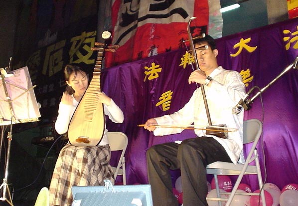 一位在场的学生好奇地问:法轮功和音乐有什么关系,学员告诉他:音乐也是文化的一环,修炼者将修炼体会谱成一首首动听的词曲,使听者沐浴在其意境中,可使人心得以净化和升华;