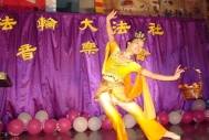 尽管当天飘着毛毛细雨,地上也有些潮湿,表演者仍然全身心投入地演出着,一位学员有感而发的说:我看到幕前、幕后,同修们尽心尽力地准备,歌者、舞者们,克服天候与场地的条件,让观众明白的感受到他们全力而优雅的演出。