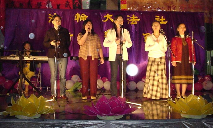 终场前,主持人解释为什么这些法轮功学员要从各外县市前来参与这场盛会,只是为了告诉大家这个洪传世界六十多个国家的功法有多么美好,同时也希望在中国大陆江氏集团发动的这场对真善忍的迫害早日结束。最后学员们以合唱“为你而来”和“法轮大法好”为这场音乐会划下了完美的句点。