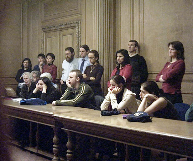 师:在中国领导人访法期间,大家去请愿,同时也表示欢迎,本来是件大好事,但是迫害法轮功团伙中的一些流氓们就要制造事端,使不明真相的法国警察对学员進行了骚扰。这件事情本身当然是邪恶搞出来的,是迫害法轮功的流氓集团的那一伙搞出来的。作为民主国家的执法机关,完全听从了另外一个国家、一个被邪恶控制的政府的指挥迫害人权,这对讲民主、讲人权的国家我想不是什么光彩的事,通过法律解决这问题是完全正当的。