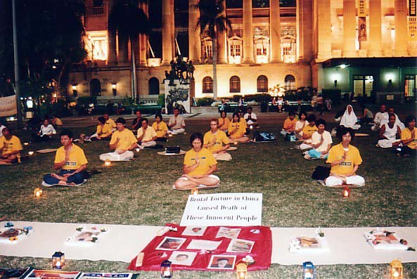 乔治国王广场是中国游客的观光景点之一,所以总有不少中国游客来此拍照留念。其中不少人借机悄悄地走过来观看资料和图片,有的还向学员表示他们在中国根本看不到这些消息。当他们看到被折磨致死的8个月大的孟昊的照片时不禁叹道:“真是太残忍了!”