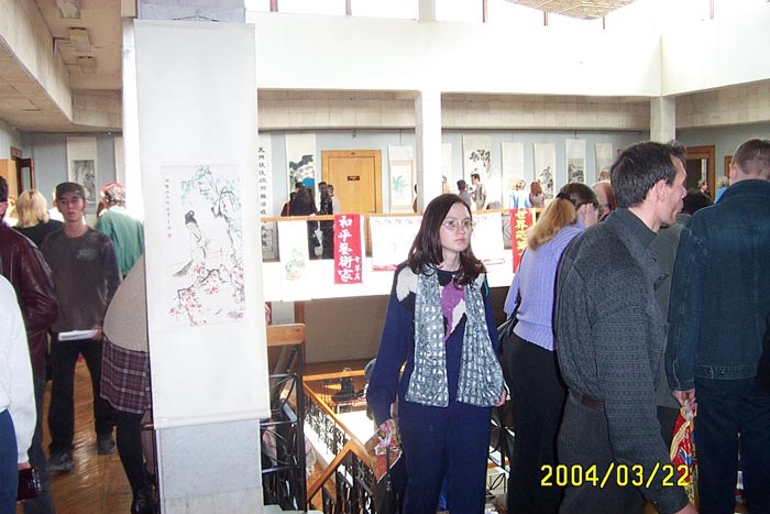 开幕式上,中心图书馆的馆长讲话,对章翠英表示感谢并赠送她一套五山城的图片画册。接着五山城主管文化的副市长发表讲话,她除了对画家表达谢意之外,还说她被法轮功学员们的坚定和他们所从事的艰难而又美好的事业所惊讶和感动,她说法轮功学员们都是非常善良的人。