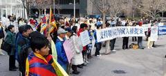 8日正午,百余名示威民众在曼哈坦47街及第二大道交口的广场上手举标语,或坐或站,静默地抗议。十多位中外异见领袖,包括「中国人权」主席刘青、「中国宗教迫害真相调查委员会」主席李世雄、「全球审江大联盟」代表李大勇、「追查迫害法轮功国际组织」代表汪志远、「西藏青年议会」主席 Kasang Phuntsok、六四学生领袖唐柏桥等轮番发言。一旁三位西藏人士的绝食抗议则已进入第七天。