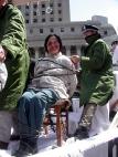第二天,我们大家都抵制灌食,看守所急了,叫来好多犯人来镇压我们。他们象土匪一样对我们连拖带拽、连踢带打。我是大法弟子不是犯人,他们不应该这样对我。早晨起来,狱警把所有的大法弟子都拖出去光着脚去冻,不许穿鞋。由于我们不断地跟犯人洪法、讲真相,他们转变了思想,他们看我没穿鞋,找付手套给我垫脚。第二天我被提审,他们又冻了全体大法弟子两个多小时,在这里只是简单地回忆。