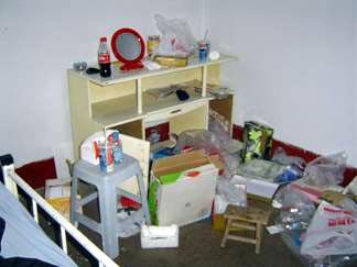 明慧网2004年4月5日报道,据公安内部透露:近日要对法轮功学员进行5天的全国性大搜捕。从2004年3月末到4月初的几天里,葫芦岛市已知有近10名大法弟子突然失踪和被绑架:2004年3月31日晚上,流离失所的大法弟子王茁、范德震、穆琴等人的住处被警察非法查抄,房屋中的台式电脑、摄像机、手机、移动硬盘等东西都被匪警一扫而光,屋里被翻得一塌糊涂、乱七八糟(见下图)。王茁、范德震、穆琴等四人也一同被强行绑架走,现关押何处不详。绑架地点:连山区新华大街海军部队5号院17号楼(四楼)