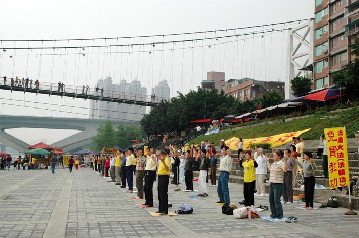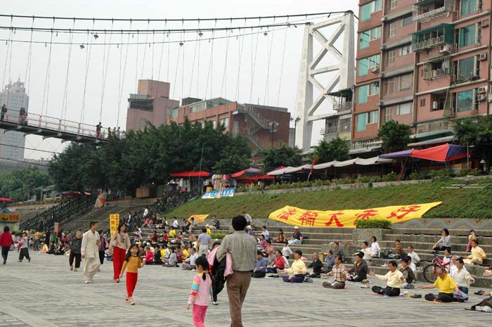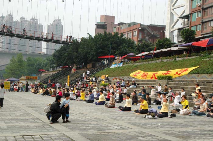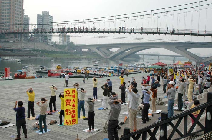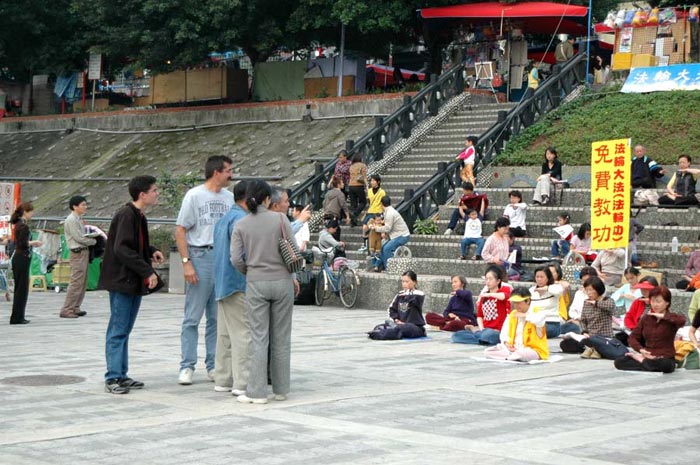 ![]() 法轮功学员在新店碧潭吊桥下炼功 | ![]() 法轮功学员在新店碧潭吊桥下炼功 | ![]() 一旁认真阅读法轮大法真象材料的民众 |