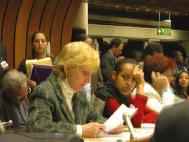 【明慧网2004年4月2日】正在日内瓦举行的第六十届联合国人权会议已经进入第三个星期了。来自瑞士、澳大利亚、美国、加拿大、法国、德国、奥地利和爱尔兰的法轮功学员还在陆陆续续的来到这里,向各国的联合国代表,非政府组织,及各界人权人士讲真象。经过全球大法弟子几年来的坚持不懈的深入讲清真象,很多人都已经了解法轮功在中国被的情况,他们主动索取学员手中的真象资料并热情的说“法轮功,法轮功好”。也有很多人在人权会议开幕时看到了我们学员的游行和请愿活动,并从那开始知道了法轮功。一些非洲国家的代表和非政府组织,经过与学员的交谈,了解了法轮功受迫害的情况,一些人表示,回去后要向他们国家的有关机构反映。其中一个非洲人权委员会成员国家的官员在听了真象后说,他没有办法决定他们国家的投票决定,但是如果他昧着良心投票,他的良心会非常不安。