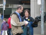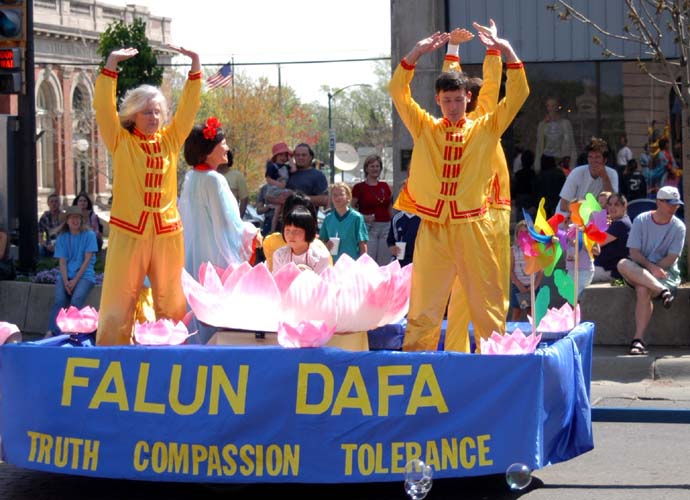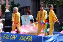 2004年4月17日华盛顿州举办水仙花节。来自西雅图,加拿大温哥华和俄勒冈州波特兰的部分法轮功学员参加了四个城市的系列游行。