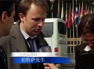 ![]() 律师阿亚特说:“如果被告再次进入瑞士境内, 他将又会被起诉。” | ![]() 律师伯特萨先生说: “中国和瑞士都签署了联合国反酷刑条约。签署国都有义务将有关罪犯逮捕并拘留。” |