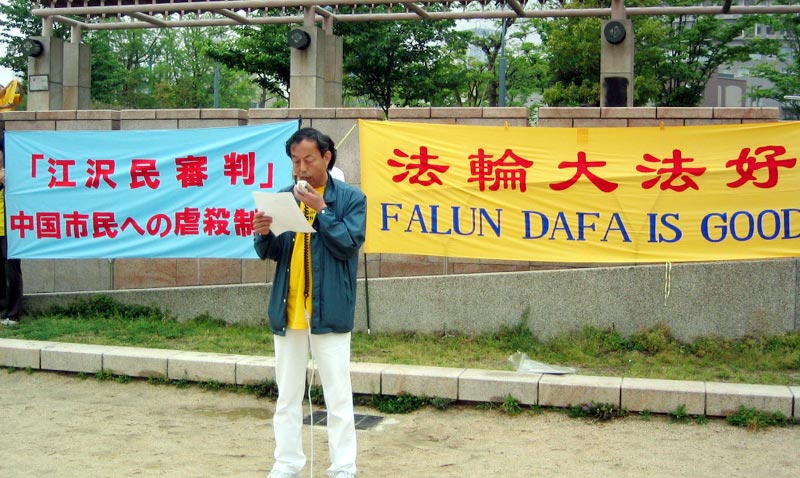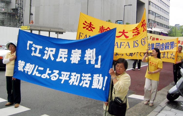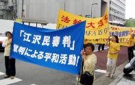 为了纪念“四二五”五周年同时向日本社会呼吁起诉镇压法轮功的元凶江泽民,日本近畿法轮功学员在大阪市举行了游行和到中国领事馆发正念活动。
