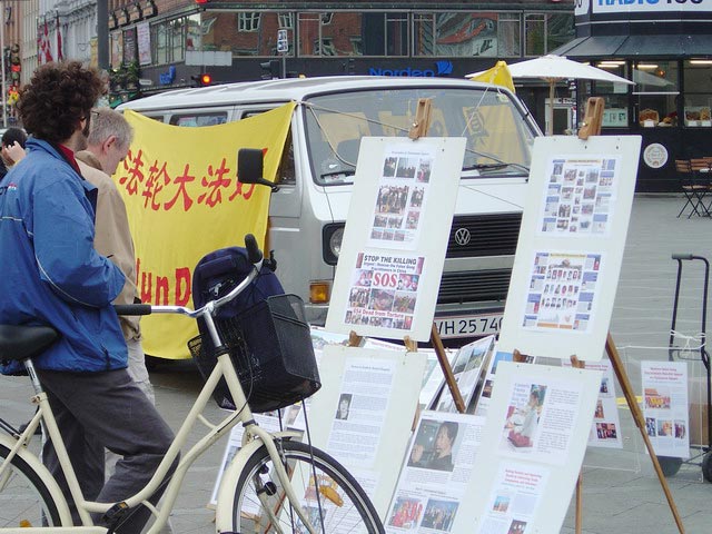 ![]() 4月25日,丹麦法轮功学员在公共广场向过往行人讲真象 | ![]() 向过往行人讲真象 |
