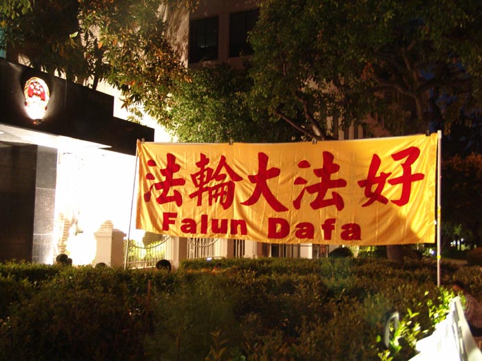 4月24日,香港大法弟子在中联办外进行和平请愿,纪念4.25五周年。
