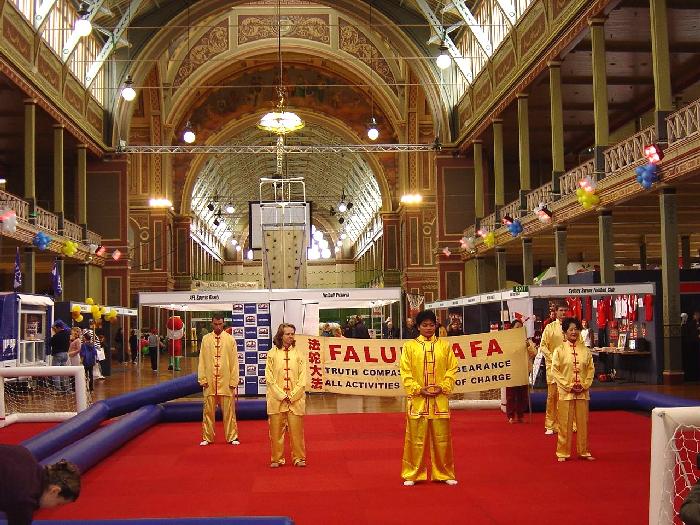 ![]() 4月25日,澳洲墨尔本法轮功学员在墨市皇家展览中心(Royal Exhibition Building)演示五套功法 | ![]() 墨尔本雅拉河桥上 | ![]() “念” |