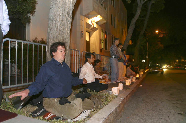 ![]() 展示功法 | ![]() 静坐请愿 | ![]() 出租车司机向学员打出胜利的手势 |