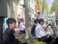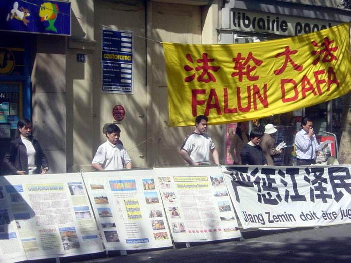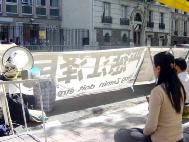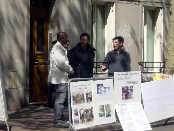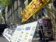 【明慧网2004年4月28日】2004年4月26日,部分在巴黎的法轮大法弟子来到中国驻法国总领馆讲真象、发正念。数百名前来办理证件的中国人和更多的行人从广播中听到了法轮功真象。他们中的不少人很愿意和大法弟子交谈以了解事实真象。