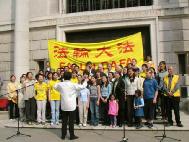 自由亚洲电台报导,加拿大温哥华、蒙特利尔和多伦多等几个城市的法轮功成员周末举办系列活动,纪念1999年4月25号法轮功上万名成员到中南海请愿五周年。多伦多的法轮功成员星期六晚上,在中国驻多伦多总领事馆前举办烛光悼念会。星期天,多伦多的法轮功成员举行“正名四.二五、审判江××”汽车大游行活动,在多伦多市和附近地区绕行,吸引了许多人观看。