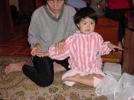 (法度妈妈):你跟妈妈一起到世界各地去,把江泽民这个大坏蛋法轮功、害死你爸爸的真象,告诉全世界的人,让他们帮我们一起来救救这些小朋友的爸爸、妈妈好不好?