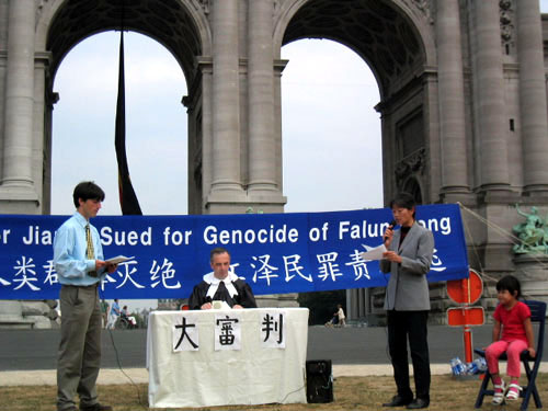 (法度):最近一年多的时间小法度和妈妈到了好多国起诉江泽民这个大坏蛋和它的帮凶,我们还模拟审判了江泽民这个大坏蛋对法轮功的迫害。