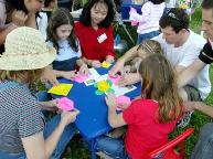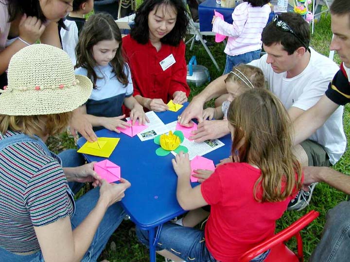 妈妈和法度叠莲花 |  莲花出污泥而不染 |  美国法轮功学员在折叠莲花 |