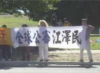 在这特别的日子里,法轮功学员祥和、肃穆的在中使馆前和平请愿,“法轮大法好”与“全球公审江泽民”的横幅显得格外醒目,它们告诉着世人中国江氏犯罪集团将很快被送上历史的审判台,这场摧残人类道德与理性的浩劫最终将结束,“真、善、忍”的美好将永存世间。