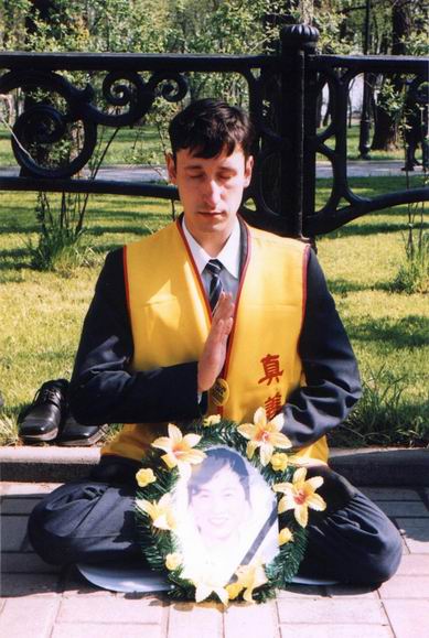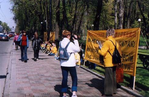 【明慧网2004年4月29日】2004年4月27日,乌克兰大法弟子来到中国大使馆前和平请愿、发正念、讲真象。向人们讲述1999年的4月25日在中国所发生的事情的真相。