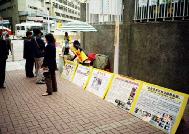 有时碰到游客不理解,口出秽言、撕毁传单甚至动手打人,学员们仍然提醒自己是个修炼者,要守住心性。即使艳阳高照或风吹雨淋,他们依然忍苦坚持。警察看过图片展板、明了真象后,不再抄录学员的身份资料,现在见面时还点头微笑。笔者访谈至此,这位小姐见到一位外国游客,连忙找出英文简介,再快跑送给他,令人感佩她不愿落下任何有缘人的用心。曾有警察因上班值勤,不方便收下传单拿在手上,就将传单折好放在警帽内。也有警察询何处可买到《转法轮》一书及相关网址等。