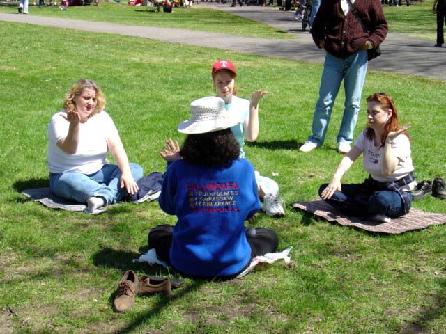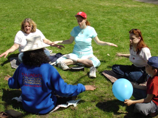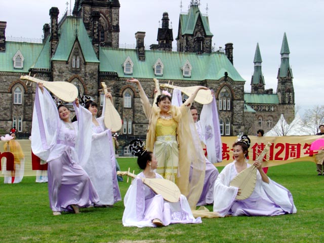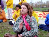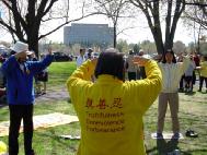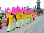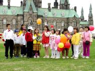 五月九日:在渥太华郁金香公园庆祝世界法轮大法日一年一度的加拿大郁金香节吸引了数十万的游人,学员在游人最集中的地带通过炼功和发放气球等庆祝活动,吸引了众多的游客。