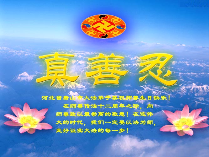 黑龙江省汤原县全体大法弟子庆祝第五届世界法轮大法日并恭贺师尊传法十二周年,在伟大的师尊圣诞日即将来临之际深深的祝愿师父生日快乐!