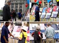 广场上一幅幅图片叙述着99年7月来一件件真实发生的惨无人道的迫害事实: