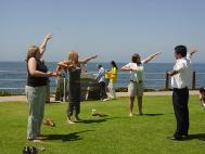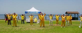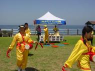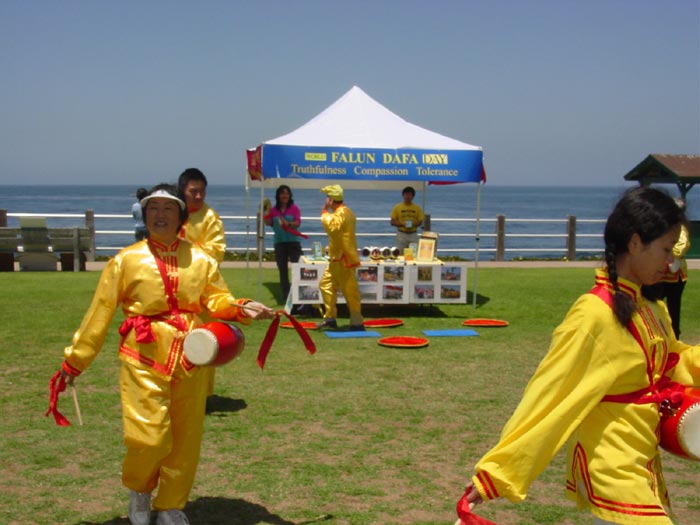 【明慧网2004年5月15日】2004年5月13日,加州圣地亚哥大法弟子在著名的海滨风景旅游地拉荷亚(La Jolla)公园举行“世界法轮大法日”和纪念师尊传法十二周年的庆祝活动。学员们在公园里摆展板、讲真象、演示功法,并做了腰鼓表演。