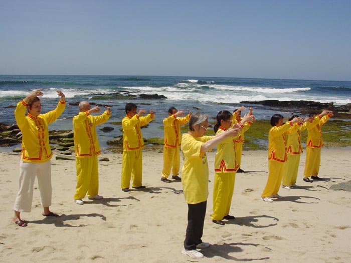 来自各地的游客纷纷索取大法资料,有的还学习了全部五套功法。其中分别来自尤他州和西雅图市的三姐妹结伴到圣地亚哥旅游,当她们听了学员对法轮功的介绍后,当即产生了浓厚的兴趣,并要求学功。她们花了半个多小时的时间非常认真地学习了全部五套功法。学完后,她们非常激动,其中一位在学功时感到很强的能量流,另一位则感到身体发热。她们都说,能在拉荷亚(La Jolla)学到法轮功是她们这次来圣地亚哥旅行的特别收获。临走时,她们邀请与学员合影留念,并表示回去后要找当地的炼功点继续学习法轮功。