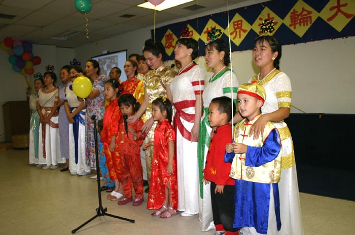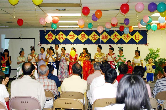 2004年5月13日晚上七点至十点半,休士顿法轮功学员在中华文化服务中心举办活动庆祝世界法轮大法日。法轮功学员的亲人、朋友以及社区的华人踊跃参加,共同欢庆节日。