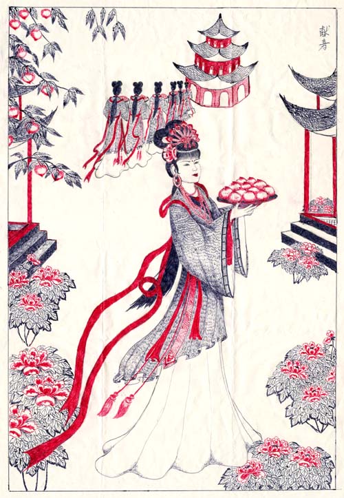 狱中大法弟子的绘画:献寿