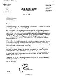 2004年4月12日,美国南达科他州国会参议员汤姆-达沙迩复信给本州居民焦红梅女士,对焦女士的表姐在中国因修炼法轮功,被警方抓走后下落不明一事表达了深切关注。