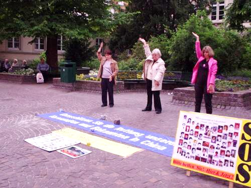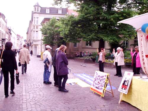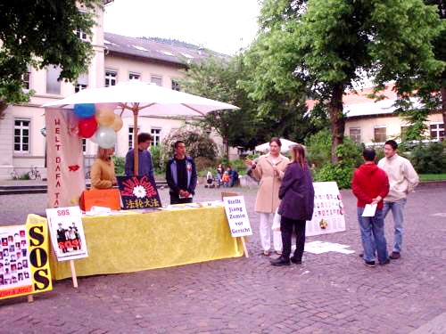 【明慧网2004年5月18日】德国海德堡地区学员在法轮大法日祝师尊生日快乐,并向德国民众讲清真象。