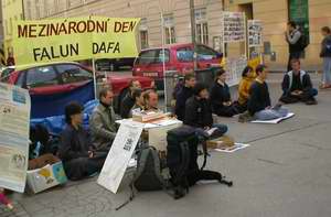 在布尔诺,学员站在繁忙的街道,人流如梭。许多人停下来了,静静地观看着功法示范。人们感谢我们将法轮功真象传单发给他们,并经常提出一些问题,问为什么法轮功在中国遭到迫害。我们告诉他们,在中国一党专政,江××非常妒忌这么多人修炼法轮功,他们听后大都接受并表示他们的理解。许多人也在请愿书上签名,表达他们反对迫害。