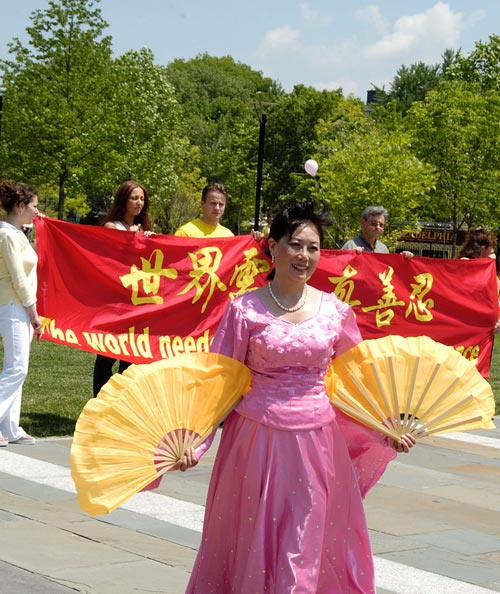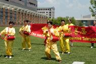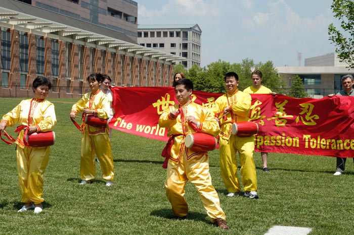 去年刚从中国劳教所出来、并辗转来美的陈刚和妻子白品常常是新闻媒体的焦点。白品说,1999年7月迫害前,她所在的北京东城区地坛炼功点,有500多学员,每天都有新的人来炼功。因为人越来越多,不断的增加新的炼功点,她后来到新分出的几个家属楼前的炼功点,那里每天都有30多人炼功。但是迫害后,每到5.13,警察就找法轮大法弟子,把大法弟子押在派出所24小时,失去那一天的自由。今天参加腰鼓表演的白品表示:“我们从来没想到修炼真善忍的好人会坐牢、甚至被打死。我们在这里欢庆的时候,想着国内弟子还在遭受着折磨。真希望他们早日获得自由,希望中国政府早日停止迫害,希望5-13真正成为全世界大法弟子欢庆的日子,让中国的弟子也来加入我们的庆祝活动。”