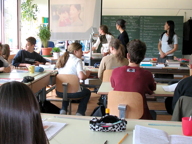 为4.25中南海和平上访五周年,德国西北莱茵州法轮功学员2004年4月25日来到科隆大教堂前,用反迫害的行动告诉更多的世人大法在中国受到迫害的真象。展位上架设了一台电视机,用来播放天安门自焚疑案与其他真象影片,学员准备了各种不同语言的真象材料,使来自世界各地的人们都能认识大法、了解真象。