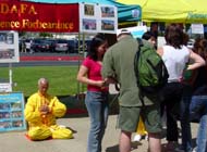 密若玛大学是圣地亚哥市的一所社区大学,有一万多名学生,其中有一定数量的华裔或亚太裔。十分可喜的是,几乎所有参加活动的中国人都接受了法轮功的真象材料,有的还同学员在法轮功展位里长时间交谈,有的详细询问了炼功点的地址,表示下周就去炼功点学习法轮功。