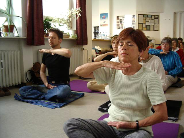 接下来是为听众演示法轮功的五套功法,人们都认真而勤奋的学习着,中午12点半讲座圆满结束。